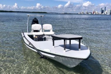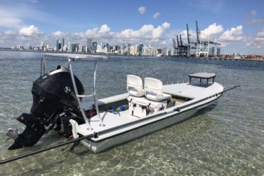 I have the option of running two different flats skiffs. With these two skiffs I can cover any fishing situation. The first one is a Biscayne made by Hells Bay Boatworks. this is an incredibly good riding and comfortable skiff while still remaining very polable. It is the main workhorse during tarpon season. It still has shallow enough draft and long range abilities for chasing snook, redfish, bonefish, or permit.A great all around do anything skiff.