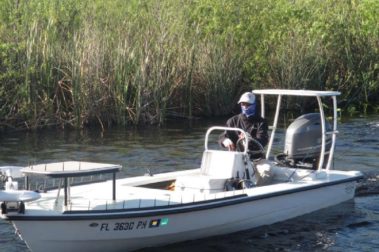 The second skiff is a custom ultralightweight model made by Spearboatworks. This skiff is unbelievable in the everglades. it gets so shallow nothing can hide. This skiff can pole to every tailing redfish or snook under the mangroves that there is. It is still very comfortable Tarpon Fishing in the Everglades or Florida keys if need be. This skiff gives us a huge advantage and really gets us away from the crowds. I also have canoes for no motor zone needs.